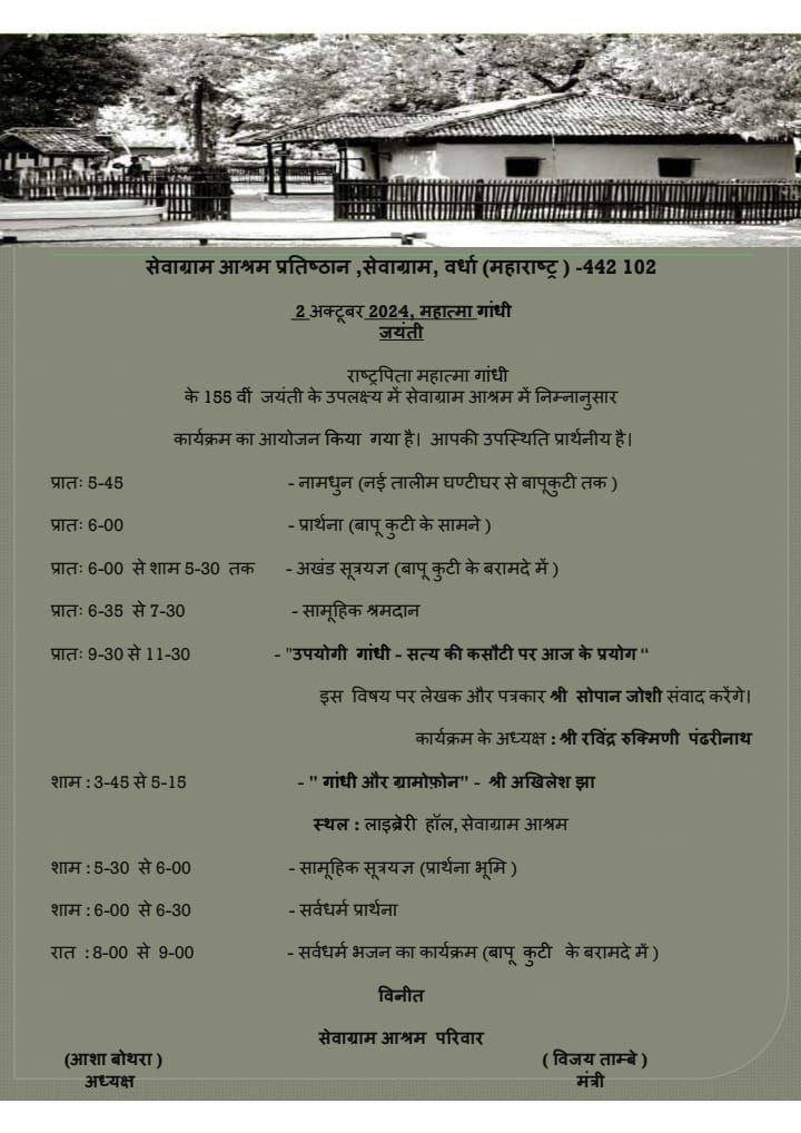 We thank the Sevagram Ashram Community, including workers and staff members, for their support and help.