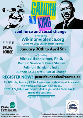 COURSE STRUCTURE: There will be 30 online sessions of 80 minutes each, over the ten-week period beginning with the anniversary of Gandhi’s assassination on January 30th, 1948 and the day after King’s assassination on April 4th, 1968 (known as the “Season of Nonviolence”). It is assumed that expectations of course participants will be set at the undergraduate level. Additional reading as well as a Research Paper would be expected of any participant seeking a Graduate School learning experience. Instruction in English.