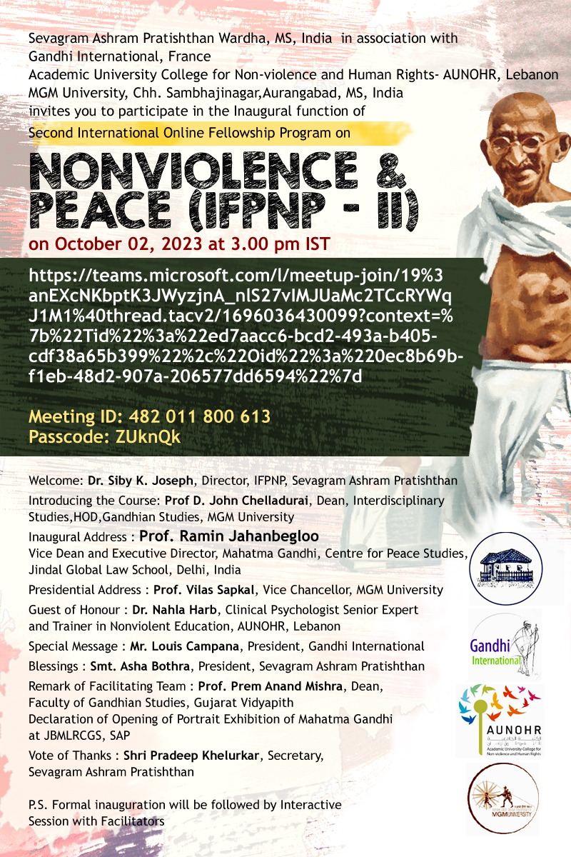 Inaugural function of   Second International Online Fellowship Program on Nonviolence & Peace (IFPNP-II ) on  October  02, 2023at 3.00 pm IST